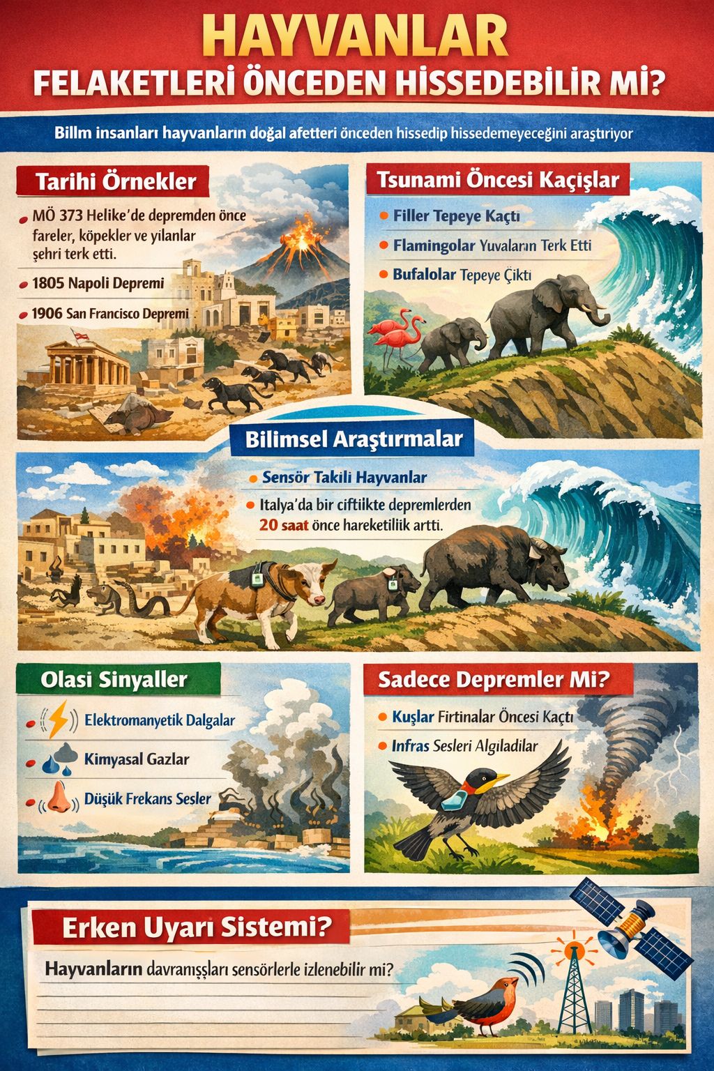 Sonuç olarak bilim dünyası hâlâ kesin cevaplara ulaşmış değil. Ancak doğanın sessiz gözlemcileri olan hayvanlar, insanlara yaklaşan felaketler konusunda beklenmedik ipuçları sunabilir.