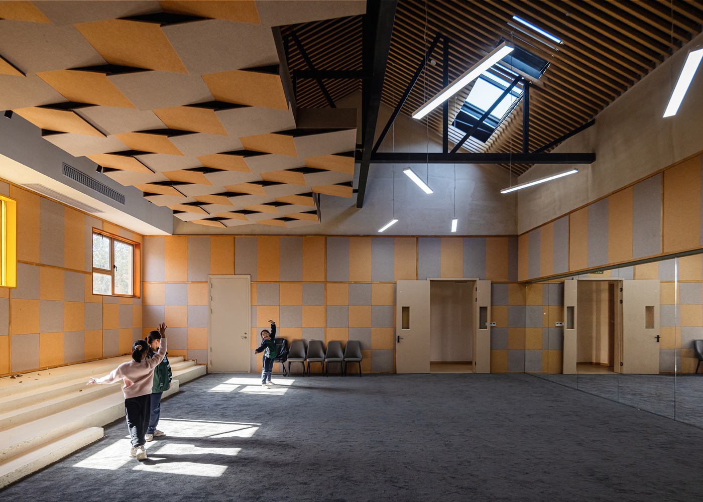Her mekân, öğrenmenin farklı bir hâlini barındırıyor. Sınıflar modüler ve esnek; bazen atölyeye, bazen tartışma alanına dönüşüyor. Yarı açık merdivenler, koridorlar ve teraslar, çocukların tesadüfi karşılaşmalarına, sessiz keşiflerine zemin hazırlıyor. Eğitimcilerle birlikte tasarlanan bu mekânsal kurgu, çocukların merak duygusunu ve özgüvenini besleyen bir pedagojik zemin oluşturuyor.