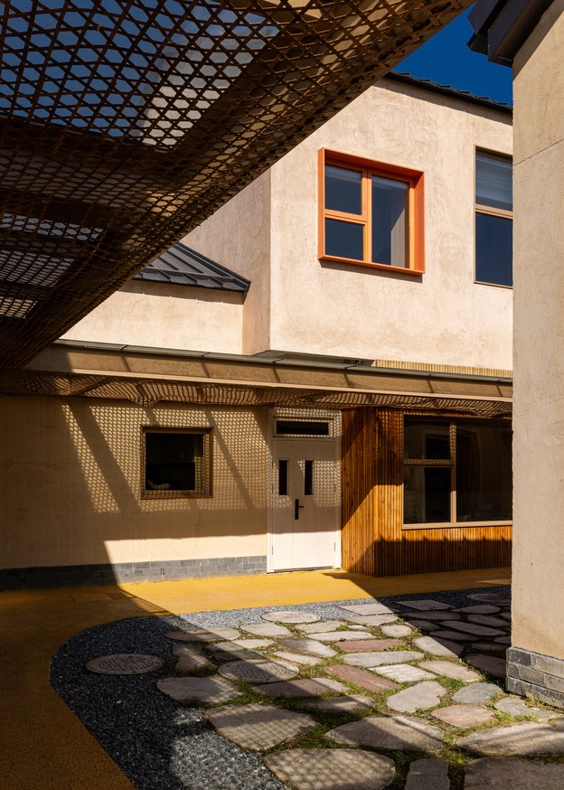 Yıkılmak zorunda kalan eski okulun izlerine saygı göstererek yeni yapıyı aynı ölçekte “öğrenme köyü” kavramıyla yeniden kurgulayan mimarlar, öğrenmenin yalnızca sınıflarda değil, doğanın her köşesinde gerçekleştiği bir mekan yarattı.