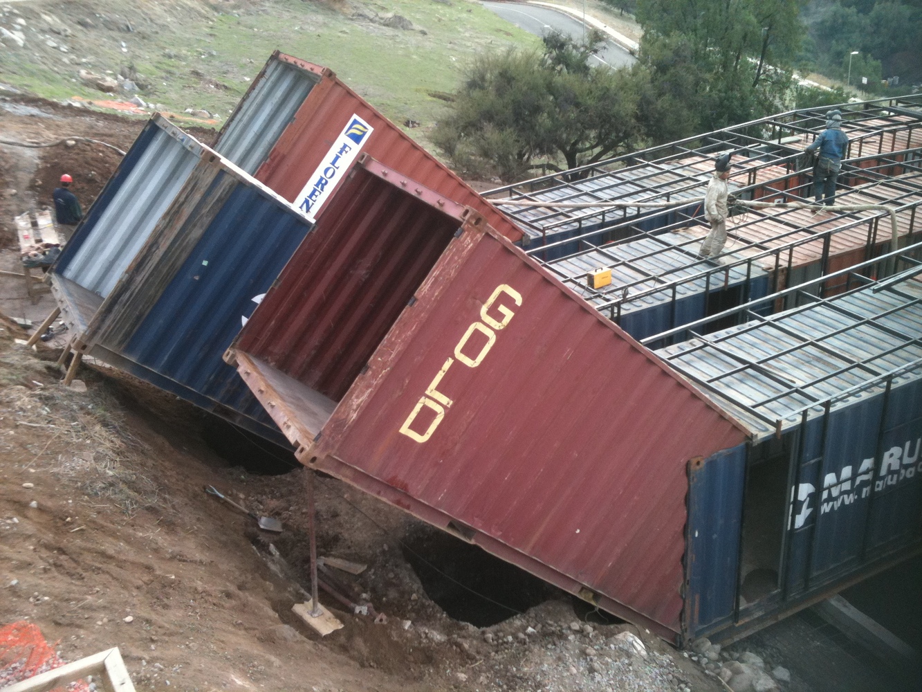 Yapı malzemesi olarak yük konteynerlerinin kullanımı günümüzde oldukça popülerdir. Bunun nedeni hem su geçirmez ve dayanıklı olmaları hem de çok miktarda konteynerin artık kulanılamamasıdır. Pasif tasarım ilkeleri uygulanan Caterpillar House, Şili'nin başkenti Santiago'nun hemen dışındaki bir yamaçta yer almaktadır ve Andes Dağları'nın manzarasına sahiptir.