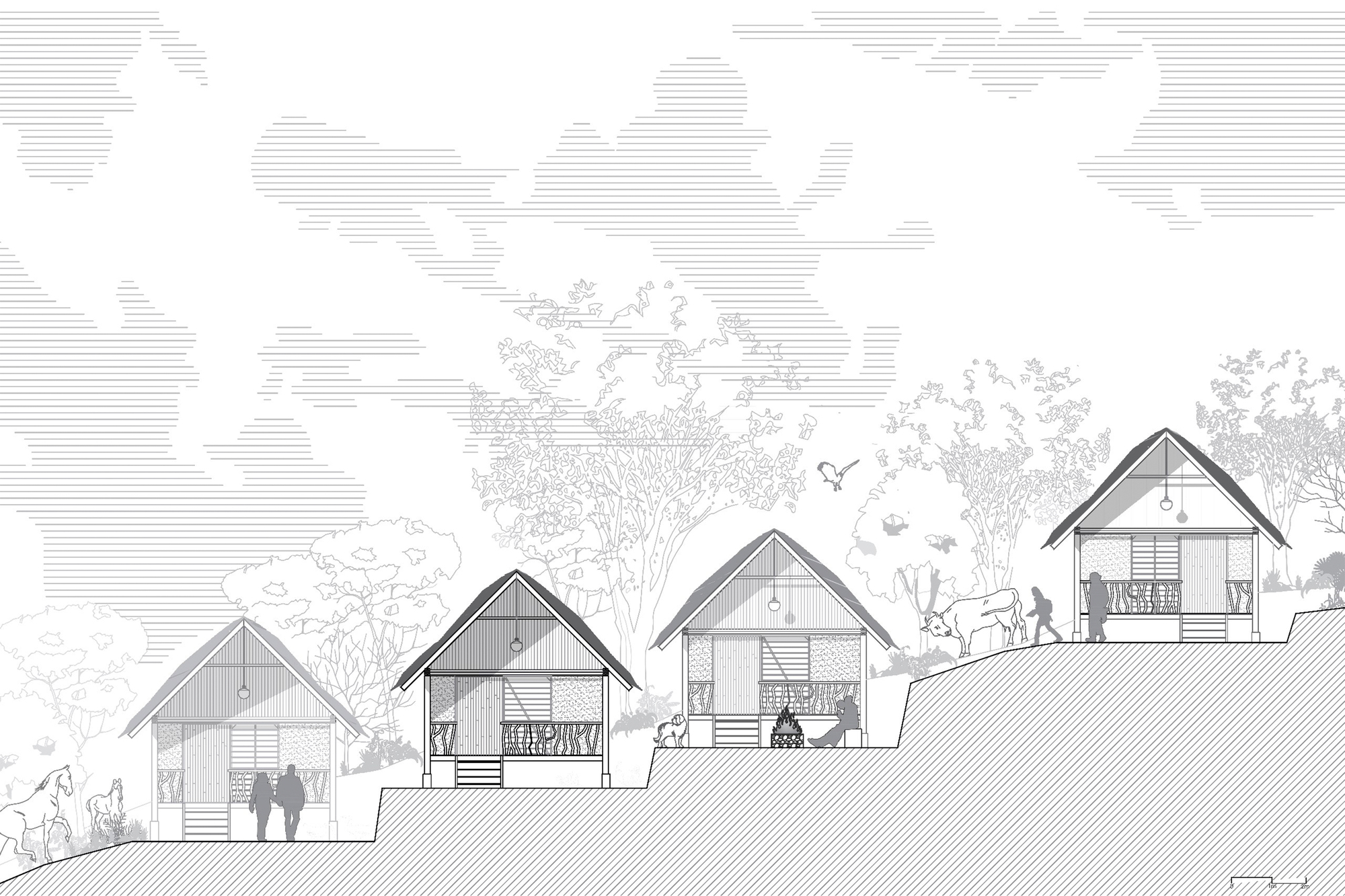 Yerel malzemeler, katılımcı üretim ve çağdaş yorumlarla şekillenen konaklama projesi, mimarlığı birlikte üretme ve yaşama pratiği olarak ele alıyor.
