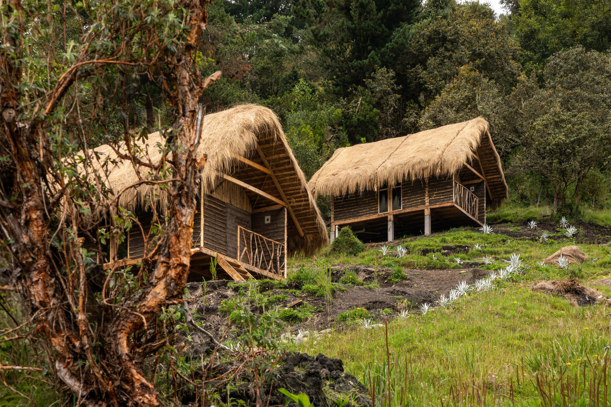 Tasarımda yerel malzemelerin kullanımı ön plana çıkarılmış; bu sayede hem çevresel etki azaltılmış hem de atalardan gelen yapım tekniklerinin devamlılığı sağlanmıştır. Geleneksel bağdadi yapı sistemi, prefabrike panellerle yeniden yorumlanmış; yerel malzemeler, ısıl konfor ve sürdürülebilirlik ön planda tutulmuştur. Kulübeler, betonarme kaide üzerine oturan okaliptüs ahşap taşıyıcı sistem, toprak dolgulu paneller ve páramo otu kaplı çatılardan oluşuyor.