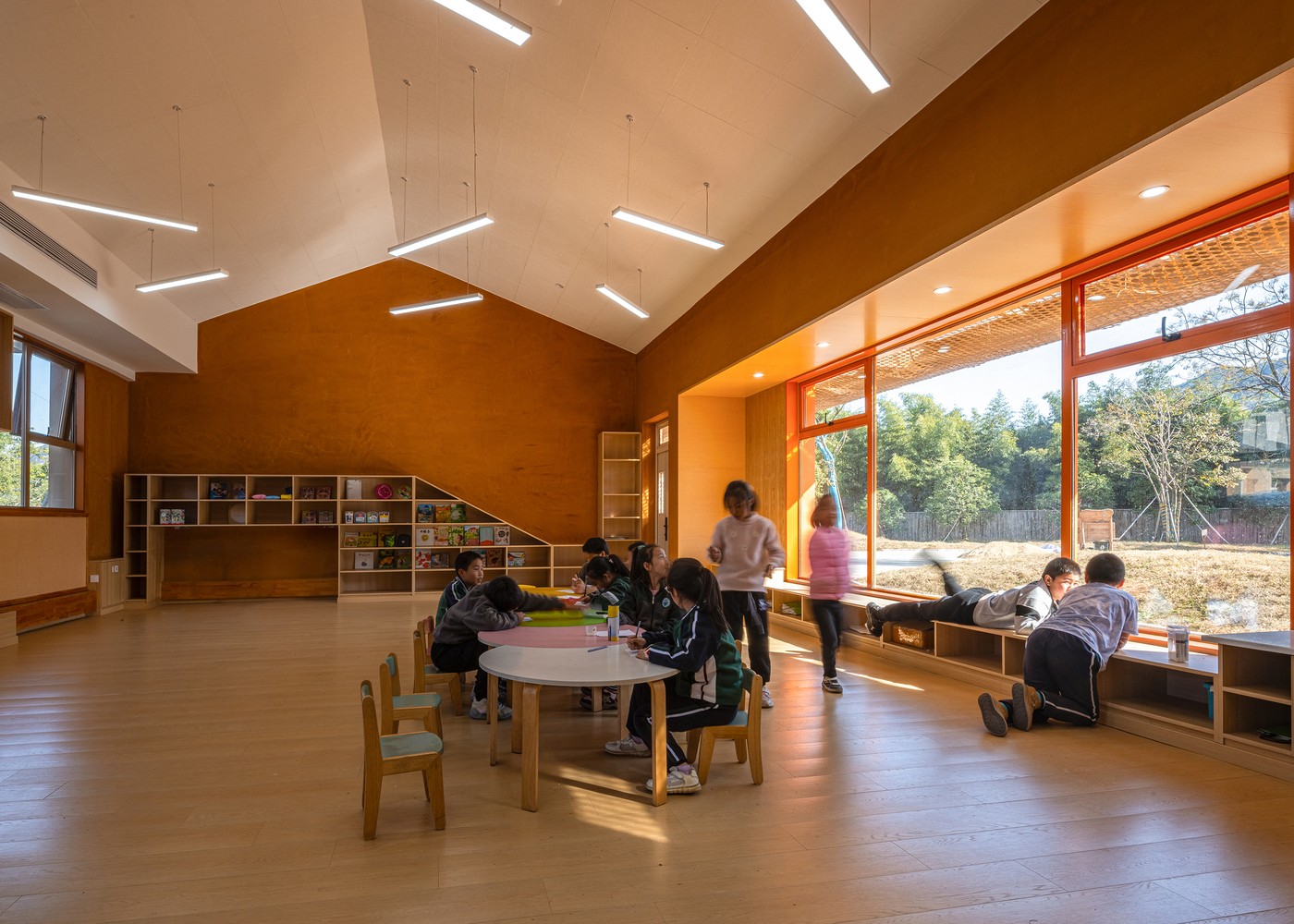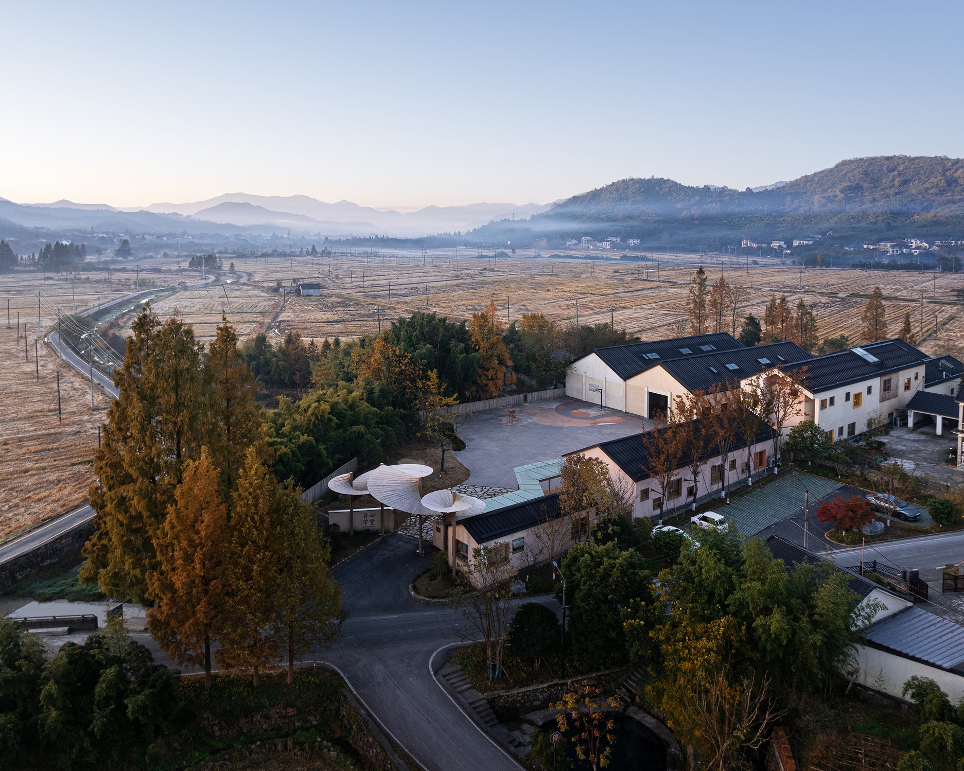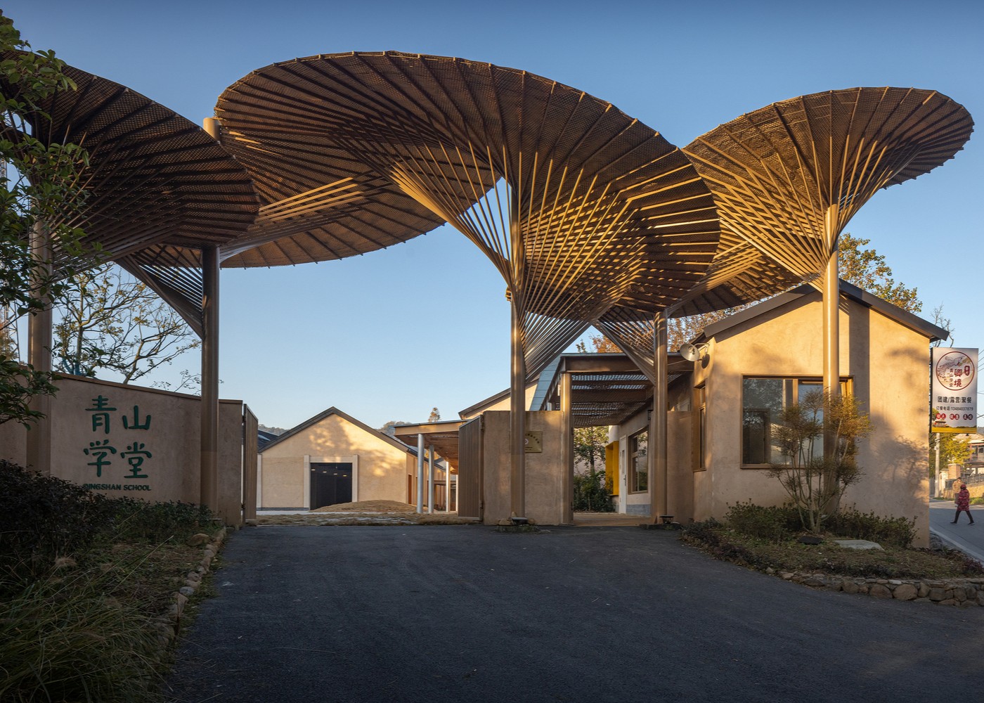 Çin’in Hangzhou şehrinin Yuhang bölgesindeki Qingshan Köyü’nde inşa edilen Qingshan Okulu, MOMENTUM Architects tarafından tasarlandı. Toplam 1740 metrekare alana sahiptir. Tasarımın temel amacı, öğrenmeyi kırsal yaşamla yeniden ilişkilendiren, çocuk merkezli bir ortam oluşturmaktı.