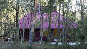 Her detayı Japon inşa geleneğinden doğan fuşya renkli küçük ev, doğayla uyumlu yaşamın sade bir örneğini sunuyor.