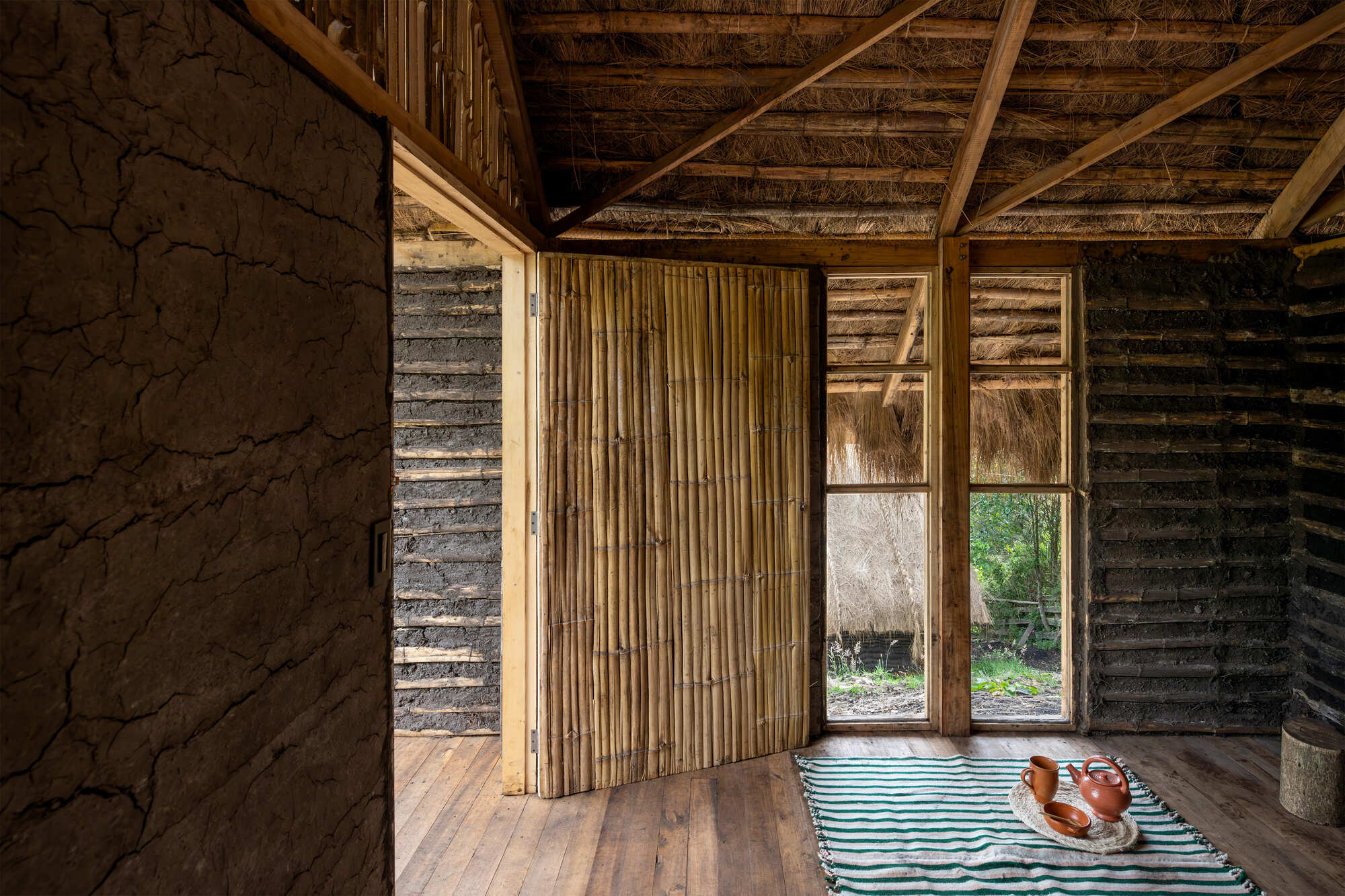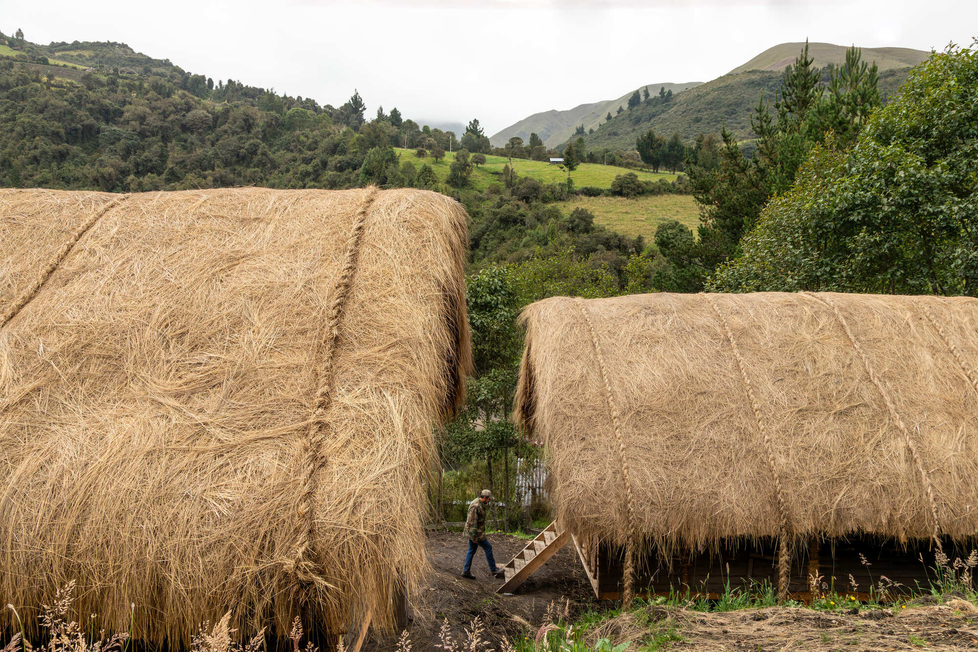 Tasarımda yerel malzemelerin kullanımı ön plana çıkarılmış; bu sayede hem çevresel etki azaltılmış hem de atalardan gelen yapım tekniklerinin devamlılığı sağlanmıştır. Geleneksel bağdadi yapı sistemi, prefabrike panellerle yeniden yorumlanmış; yerel malzemeler, ısıl konfor ve sürdürülebilirlik ön planda tutulmuştur. Kulübeler, betonarme kaide üzerine oturan okaliptüs ahşap taşıyıcı sistem, toprak dolgulu paneller ve páramo otu kaplı çatılardan oluşuyor.